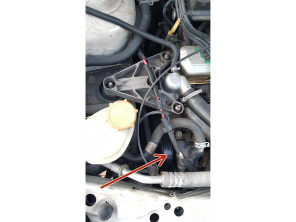 Retirez le galet par dessous en faisant attention qu'il n'abîme ni les durites de refroidissement ni celle de clim.